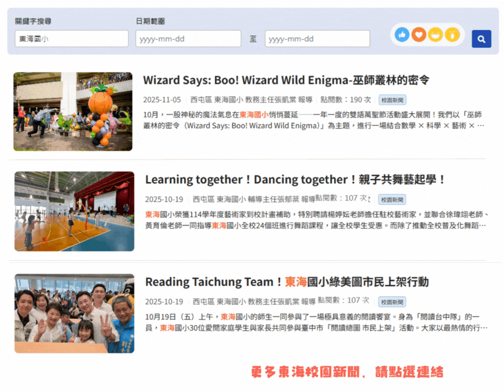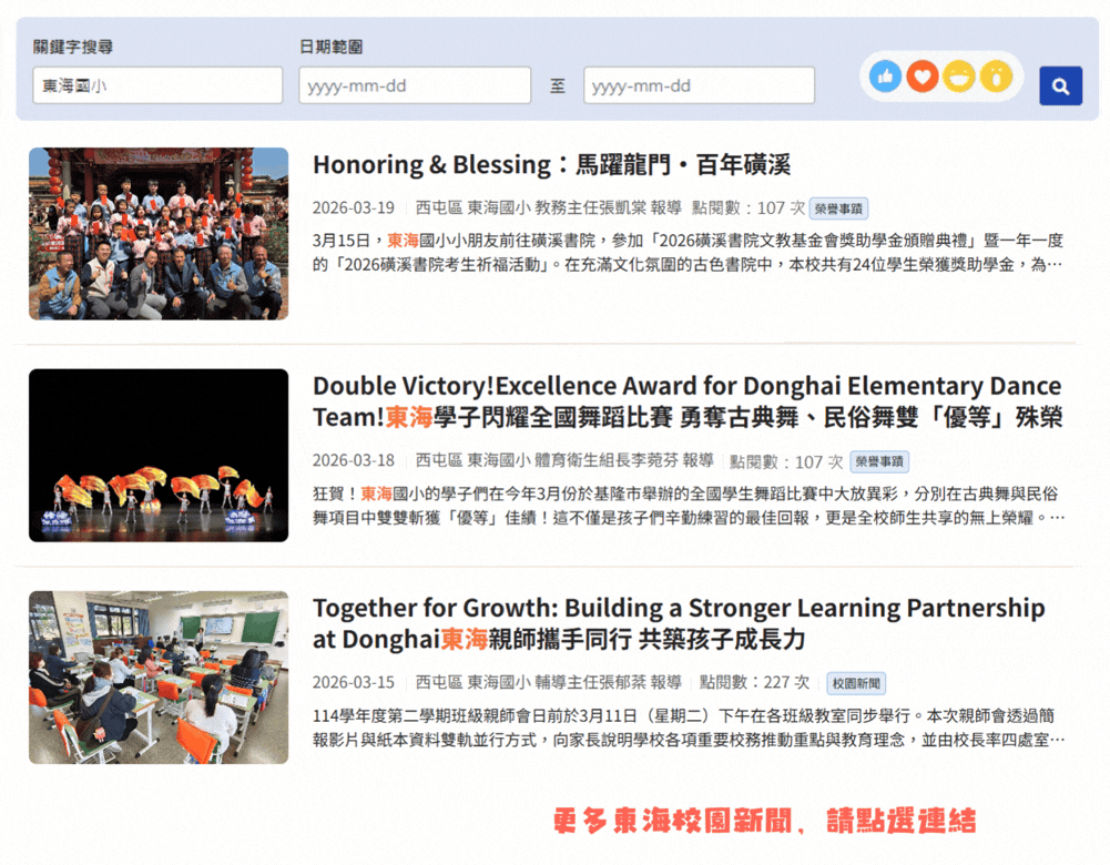 東海校園新聞(另開新視窗至教育局-校園新聞-東海國小頁面)
